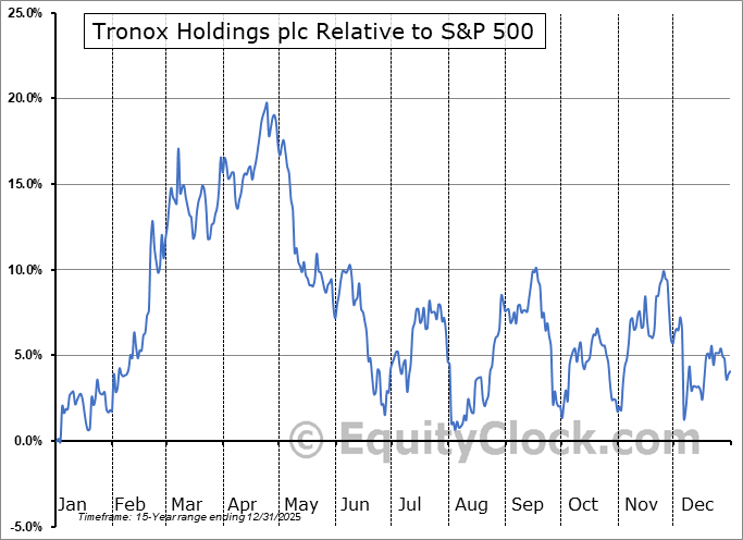 Analysis of the Tronox Holdings plc (NYSE:TROX) seasonal charts above shows that a Buy Date of January 28 and a Sell Date of April 18 has resulted in a geometric average return of 8.38% above the benchmark rate of the S&P 500 Total Return Index over the past 14 years. This seasonal timeframe has shown positive results compared to the benchmark in 11 of those periods. This is a good rate of success and the return strongly outperforms the relative buy-and-hold performance of the stock over the past 14 years by an average of 27% per year.