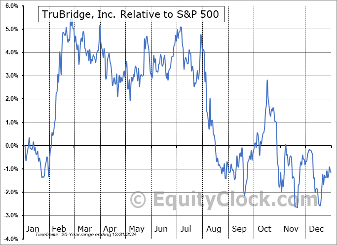 Analysis of the TruBridge, Inc. (NASD:TBRG) seasonal charts above shows that a Buy Date of December 18 and a Sell Date of March 31 has resulted in a geometric average return of 4.46% above the benchmark rate of the S&P 500 Total Return Index over the past 20 years. This seasonal timeframe has shown positive results compared to the benchmark in 15 of those periods. This is a good rate of success and the return strongly outperforms the relative buy-and-hold performance of the stock over the past 20 years by an average of 12.17% per year.