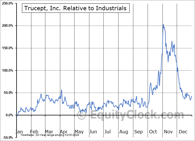 The seasonal timeframe correlates Poorly with the period of seasonal strength for the Industrials sector, which runs from October 29 to May 10. The seasonal chart for the broad sector is available via the following link: Industrials Sector Seasonal Chart.