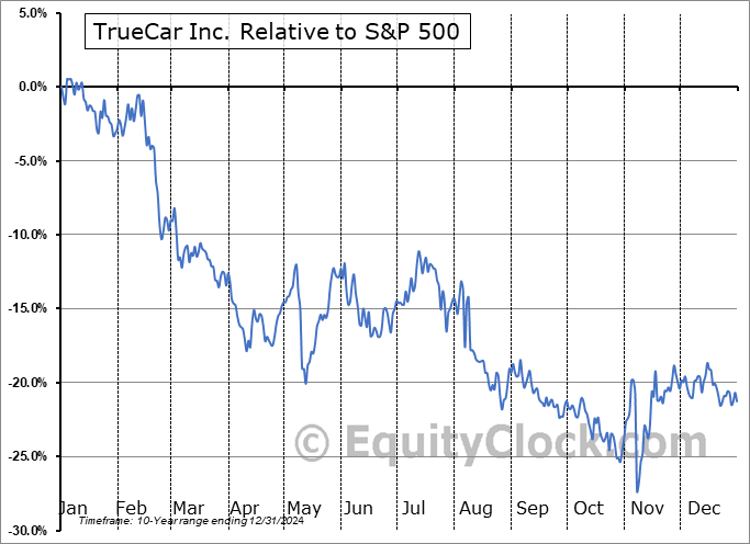 Analysis of the TrueCar Inc. (NASD:TRUE) seasonal charts above shows that a Buy Date of November 7 and a Sell Date of February 12 has resulted in a geometric average return of 8.72% above the benchmark rate of the S&P 500 Total Return Index over the past 10 years. This seasonal timeframe has shown positive results compared to the benchmark in 7 of those periods. This is a good rate of success and the return strongly outperforms the relative buy-and-hold performance of the stock over the past 10 years by an average of 34.53% per year.