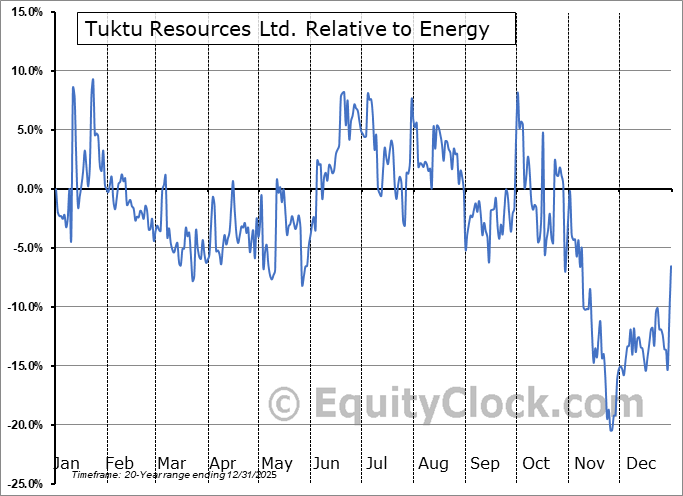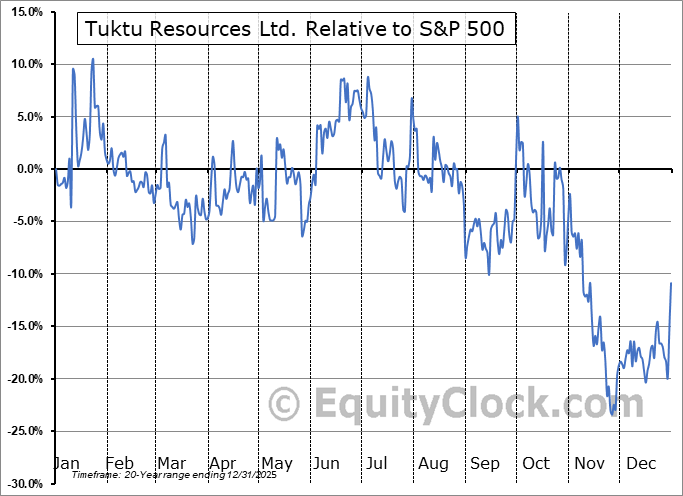 Analysis of the Tuktu Resources Ltd. (TSXV:TUK.V) seasonal charts above shows that a Buy Date of May 27 and a Sell Date of August 28 has resulted in a geometric average return of 4.64% above the benchmark rate of the S&P 500 Total Return Index over the past 20 years. This seasonal timeframe has shown positive results compared to the benchmark in 15 of those periods. This is a good rate of success and the return strongly outperforms the relative buy-and-hold performance of the stock over the past 20 years by an average of 26.56% per year.