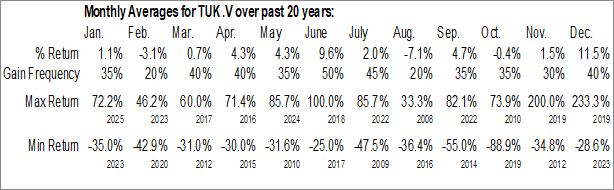 To download TUK.V seasonal chart data, please log in or Subscribe.