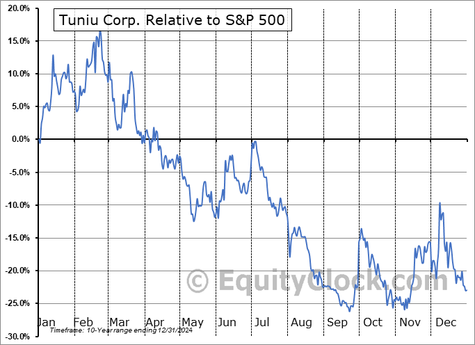 Analysis of the Tuniu Corp. (NASD:TOUR) seasonal charts above shows that a Buy Date of August 26 and a Sell Date of November 20 has resulted in a geometric average return of 5.41% above the benchmark rate of the S&P 500 Total Return Index over the past 10 years. This seasonal timeframe has shown positive results compared to the benchmark in 6 of those periods. This is a fair rate of success and the return strongly outperforms the relative buy-and-hold performance of the stock over the past 10 years by an average of 36.46% per year.