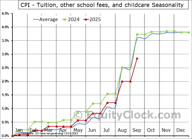 CPI - Owners' equivalent rent of primary residence Seasonal Chart CPI - Tenants' and household insurance Seasonal Chart CPI - Fuels and utilities Seasonal Chart CPI - Household energy Seasonal Chart CPI - Fuel oil and other fuels Seasonal Chart CPI - Energy services Seasonal Chart CPI - Water and sewer and trash collection services Seasonal Chart CPI - Household furnishings and operations Seasonal Chart CPI - Apparel Seasonal Chart CPI - Men's and boys' apparel Seasonal Chart CPI - Women's and girls' apparel Seasonal Chart CPI - Footwear Seasonal Chart CPI - Infants' and toddlers' apparel Seasonal Chart CPI - Transportation Seasonal Chart CPI - Private transportation Seasonal Chart CPI - New and used motor vehicles Seasonal Chart CPI - New vehicles Seasonal Chart CPI - Used cars and trucks Seasonal Chart CPI - Motor fuel Seasonal Chart CPI - Motor vehicle parts and equipment Seasonal Chart CPI - Motor vehicle maintenance and repair Seasonal Chart CPI - Public transportation Seasonal Chart CPI - Airline fare Seasonal Chart CPI - Medical care Seasonal Chart CPI - Medical care commodities Seasonal Chart CPI - Medical care services Seasonal Chart CPI - Professional services Seasonal Chart CPI - Services by other medical professionals Seasonal Chart CPI - Hospital and related services Seasonal Chart CPI - Recreation Seasonal Chart CPI - Video and audio Seasonal Chart CPI - Cable and satellite television and radio service Seasonal Chart CPI - Pet food Seasonal Chart CPI - Toys Seasonal Chart CPI - Music instruments and accessories Seasonal Chart CPI - Club dues and fees for participant sports and group exercises Seasonal Chart CPI - Admission to movies, theaters, and concerts Seasonal Chart CPI - Recreational books Seasonal Chart CPI - Education and communication Seasonal Chart CPI - Education Seasonal Chart CPI - Tuition, other school fees, and childcare Seasonal Chart CPI - Communication Seasonal Chart CPI - Information and information processing Seasonal Chart