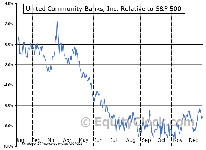Analysis of the United Community Banks, Inc. (NYSE:UCB) seasonal charts above shows that a Buy Date of June 24 and a Sell Date of September 18 has resulted in a geometric average return of 0.83% above the benchmark rate of the S&P 500 Total Return Index over the past 20 years. This seasonal timeframe has shown positive results compared to the benchmark in 13 of those periods. This is a good rate of success and the return strongly outperforms the relative buy-and-hold performance of the stock over the past 20 years by an average of 14.92% per year.