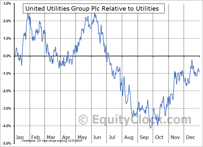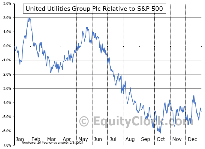 Analysis of the United Utilities Group Plc (OTCMKT:UUGRY) seasonal charts above shows that a Buy Date of March 3 and a Sell Date of May 24 has resulted in a geometric average return of 2.28% above the benchmark rate of the S&P 500 Total Return Index over the past 20 years. This seasonal timeframe has shown positive results compared to the benchmark in 15 of those periods. This is a good rate of success and the return strongly outperforms the relative buy-and-hold performance of the stock over the past 20 years by an average of 9.17% per year.