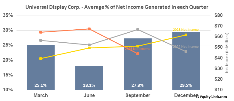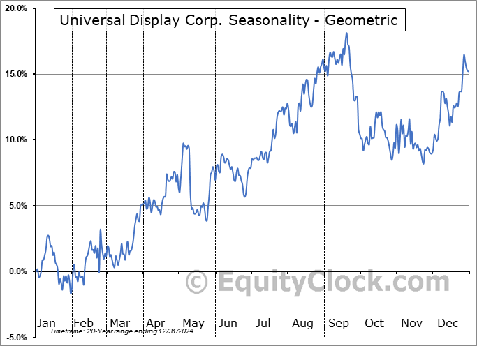 Universal Display Corp. (NASD:OLED) Seasonal Chart