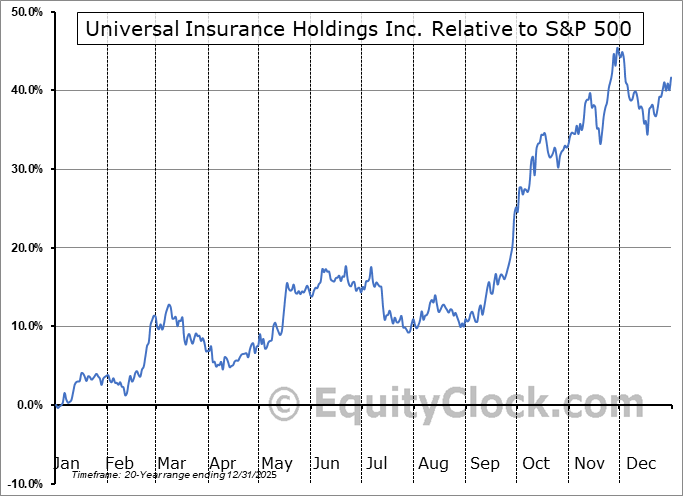 Analysis of the Universal Insurance Holdings Inc. (NYSE:UVE) seasonal charts above shows that a Buy Date of July 27 and a Sell Date of December 11 has resulted in a geometric average return of 28.05% above the benchmark rate of the S&P 500 Total Return Index over the past 20 years. This seasonal timeframe has shown positive results compared to the benchmark in 17 of those periods. This is a very good rate of success, but the return underperforms the relative buy-and-hold performance of the stock over the past 20 years by an average of 2.29% per year.