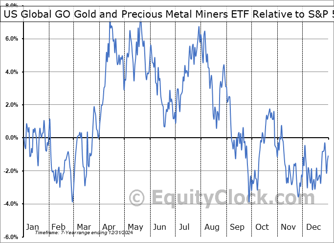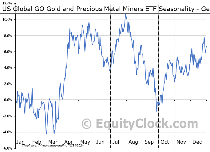 US Global GO Gold and Precious Metal Miners ETF (AMEX:GOAU) Seasonal Chart