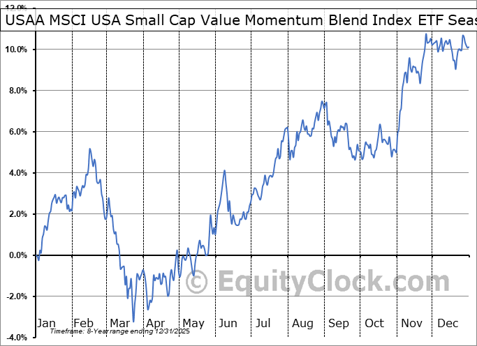 A word of caution: Only 6 years of data is available for shares of USVM, perhaps insufficient to create a seasonal profile that accurately gauges the seasonal tendencies influencing the investment. Ideally, while 20 years is preferred, at least 10 years of data is required to perform a seasonal analysis that is considered to be reliable for future seasonal periods.