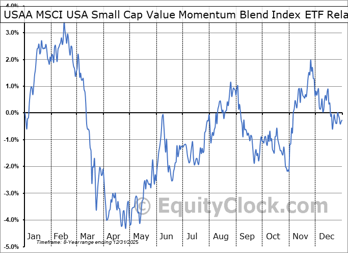 Analysis of the USAA MSCI USA Small Cap Value Momentum Blend Index ETF (NASD:USVM) seasonal charts above shows that a Buy Date of November 30 and a Sell Date of February 24 has resulted in a geometric average return of 2.13% above the benchmark rate of the S&P 500 Total Return Index over the past 6 years. This seasonal timeframe has shown positive results compared to the benchmark in 5 of those periods. This is a very good rate of success and the return strongly outperforms the relative buy-and-hold performance of the stock over the past 6 years by an average of 6.78% per year.
