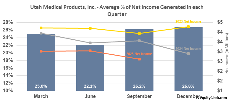 Utah Medical Products, Inc. (NASD:UTMD) Seasonal Chart