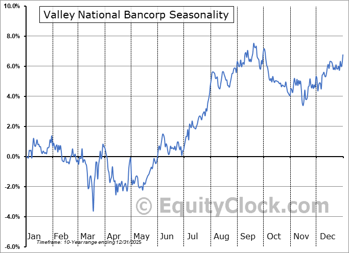 Analysis of the Valley National Bancorp (NASD:VLYPP) seasonal charts above shows that a Buy Date of July 12 and a Sell Date of September 30 has resulted in a geometric average return of 4.18% above the benchmark rate of the S&P 500 Total Return Index over the past 9 years. This seasonal timeframe has shown positive results compared to the benchmark in 7 of those periods. This is a good rate of success and the return strongly outperforms the relative buy-and-hold performance of the stock over the past 9 years by an average of 12.16% per year.