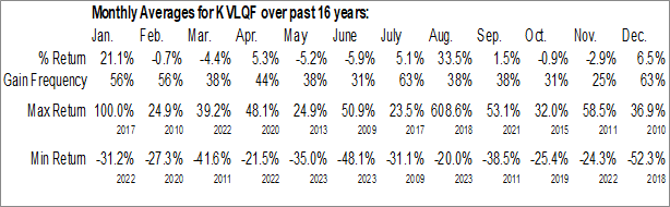 To download KVLQF seasonal chart data, please log in or Subscribe.