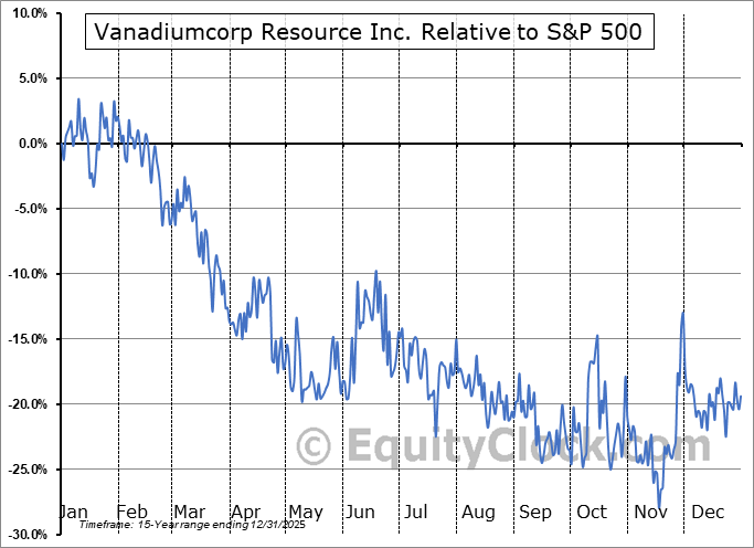 Analysis of the Vanadiumcorp Resource Inc. (TSXV:VRB.V) seasonal charts above shows that a Buy Date of November 19 and a Sell Date of February 12 has resulted in a geometric average return of 3.22% above the benchmark rate of the S&P 500 Total Return Index over the past 14 years. This seasonal timeframe has shown positive results compared to the benchmark in 9 of those periods. This is a fair rate of success and the return strongly outperforms the relative buy-and-hold performance of the stock over the past 14 years by an average of 40.68% per year.