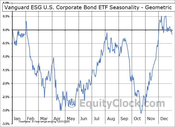 Vanguard ESG U.S. Corporate Bond ETF (AMEX:VCEB) Seasonal Chart