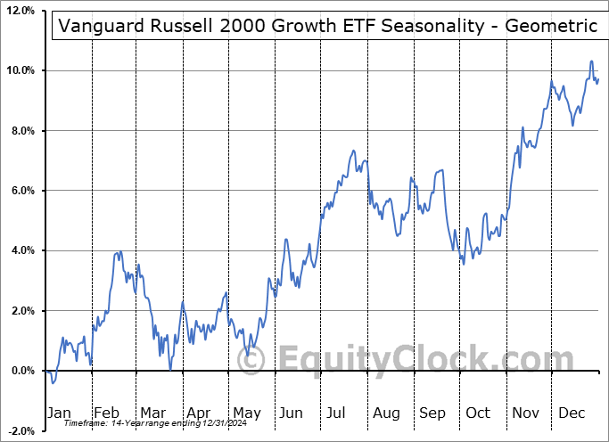 Vanguard Russell 2000 Growth ETF (NASD:VTWG) Seasonal Chart