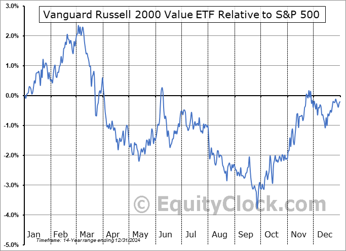 Analysis of the Vanguard Russell 2000 Value ETF (NASD:VTWV) seasonal charts above shows that a Buy Date of August 19 and a Sell Date of December 2 has resulted in a geometric average return of 1.09% above the benchmark rate of the S&P 500 Total Return Index over the past 14 years. This seasonal timeframe has shown positive results compared to the benchmark in 11 of those periods. This is a good rate of success and the return strongly outperforms the relative buy-and-hold performance of the stock over the past 14 years by an average of 5.7% per year.