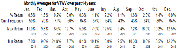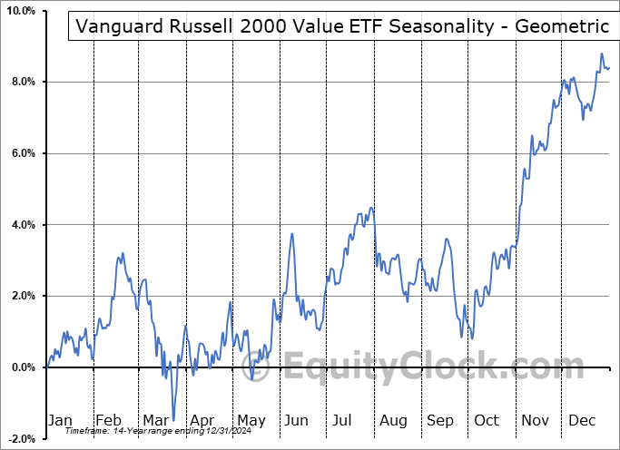 Vanguard Russell 2000 Value ETF (NASD:VTWV) Seasonal Chart