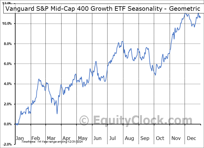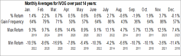 Vanguard S&P Mid-Cap 400 Growth ETF (NYSE:IVOG) Seasonal Chart