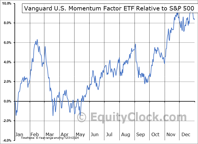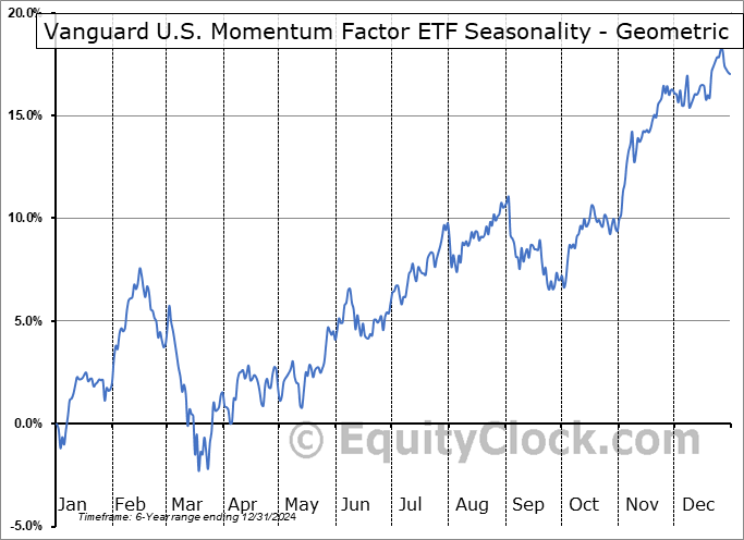 A word of caution: Only 6 years of data is available for shares of VFMO, perhaps insufficient to create a seasonal profile that accurately gauges the seasonal tendencies influencing the investment. Ideally, while 20 years is preferred, at least 10 years of data is required to perform a seasonal analysis that is considered to be reliable for future seasonal periods.