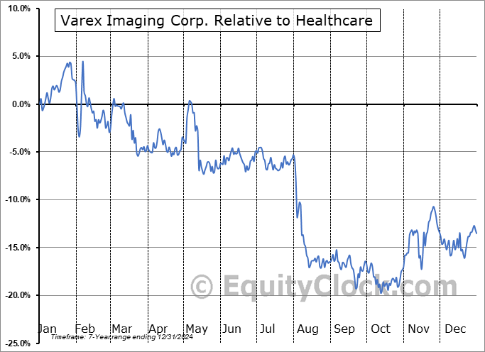 The seasonal timeframe correlates Poorly with the period of seasonal strength for the Healthcare sector, which runs from April 25 to December 4. The seasonal chart for the broad sector is available via the following link: Healthcare Sector Seasonal Chart.