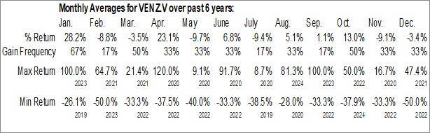 To download VENZ.V seasonal chart data, please log in or Subscribe.
