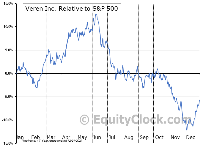 Analysis of the Veren Inc. (NYSE:VRN) seasonal charts above shows that a Buy Date of February 8 and a Sell Date of April 30 has resulted in a geometric average return of 7.59% above the benchmark rate of the S&P 500 Total Return Index over the past 17 years. This seasonal timeframe has shown positive results compared to the benchmark in 13 of those periods. This is a good rate of success and the return strongly outperforms the relative buy-and-hold performance of the stock over the past 17 years by an average of 23.06% per year.