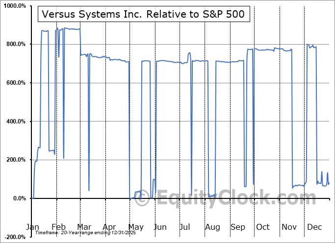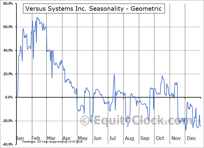 Analysis of the Versus Systems Inc. (NASD:VS) seasonal charts above shows that a Buy Date of November 27 and a Sell Date of February 18 has resulted in a geometric average return of 57.05% above the benchmark rate of the S&P 500 Total Return Index over the past 20 years. This seasonal timeframe has shown positive results compared to the benchmark in 13 of those periods. This is a good rate of success and the return strongly outperforms the relative buy-and-hold performance of the stock over the past 20 years by an average of 88.04% per year.