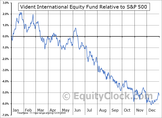 Analysis of the Vident International Equity Fund (AMEX:VIDI) seasonal charts above shows that a Buy Date of December 12 and a Sell Date of April 12 has resulted in a geometric average return of 0.3% above the benchmark rate of the S&P 500 Total Return Index over the past 10 years. This seasonal timeframe has shown positive results compared to the benchmark in 8 of those periods. This is a very good rate of success and the return strongly outperforms the relative buy-and-hold performance of the stock over the past 10 years by an average of 9.52% per year.