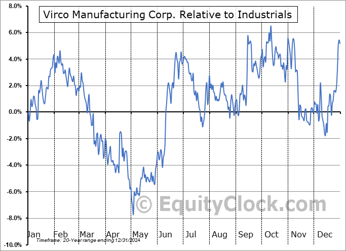 Analysis of the Virco Manufacturing Corp. (NASD:VIRC) seasonal charts above shows that a Buy Date of May 5 and a Sell Date of September 15 has resulted in a geometric average return of 7.32% above the benchmark rate of the S&P 500 Total Return Index over the past 20 years. This seasonal timeframe has shown positive results compared to the benchmark in 15 of those periods. This is a good rate of success and the return strongly outperforms the relative buy-and-hold performance of the stock over the past 20 years by an average of 14.73% per year.
