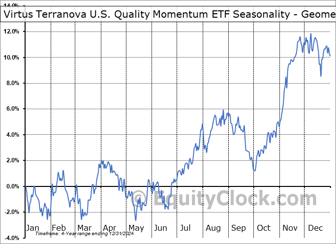 Virtus Terranova U.S. Quality Momentum ETF (AMEX:JOET) Seasonal Chart