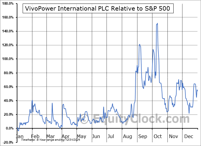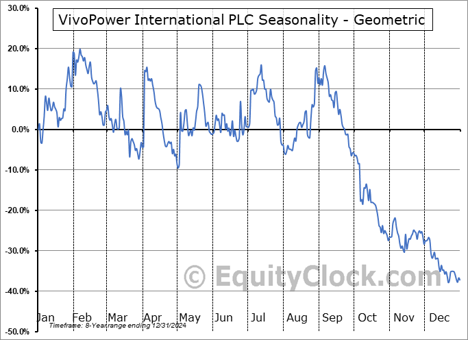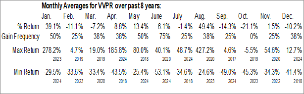 A word of caution: Only 8 years of data is available for shares of VVPR, perhaps insufficient to create a seasonal profile that accurately gauges the seasonal tendencies influencing the investment. Ideally, while 20 years is preferred, at least 10 years of data is required to perform a seasonal analysis that is considered to be reliable for future seasonal periods.