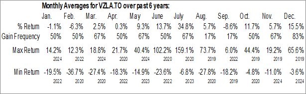 To download VZLA.TO seasonal chart data, please log in or Subscribe.