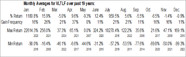 Volt Lithium Corp. (OTCMKT:VLTLF) Seasonal Chart