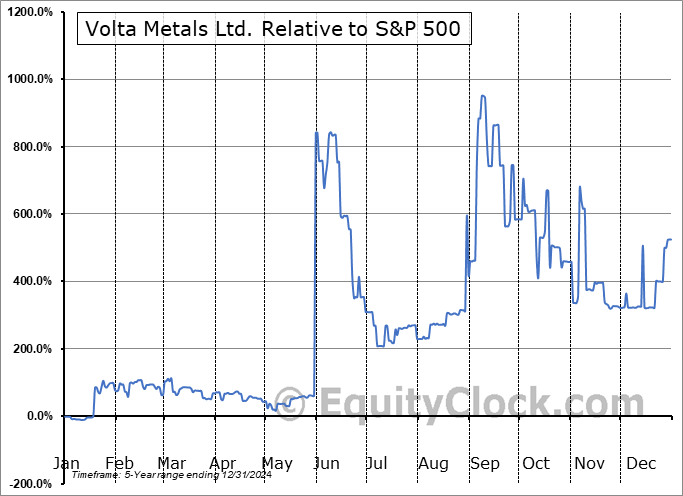 Analysis of the Volta Metals Ltd. (CSE:VLTA.CA) seasonal charts above shows that a Buy Date of December 16 and a Sell Date of March 13 has resulted in a geometric average return of 61.94% above the benchmark rate of the S&P 500 Total Return Index over the past 5 years. This seasonal timeframe has shown positive results compared to the benchmark in 4 of those periods. This is a very good rate of success and the return strongly outperforms the relative buy-and-hold performance of the stock over the past 5 years by an average of 95.7% per year.