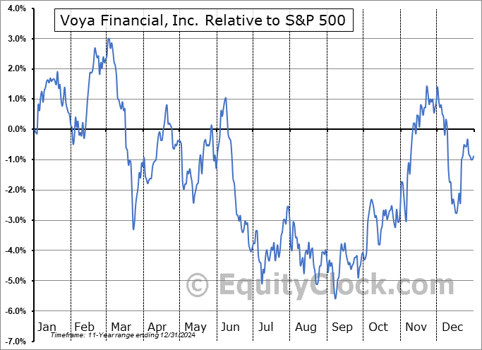 Analysis of the Voya Financial, Inc. (NYSE:VOYA) seasonal charts above shows that a Buy Date of September 7 and a Sell Date of January 7 has resulted in a geometric average return of 6.46% above the benchmark rate of the S&P 500 Total Return Index over the past 11 years. This seasonal timeframe has shown positive results compared to the benchmark in 9 of those periods. This is a very good rate of success and the return strongly outperforms the relative buy-and-hold performance of the stock over the past 11 years by an average of 11.9% per year.