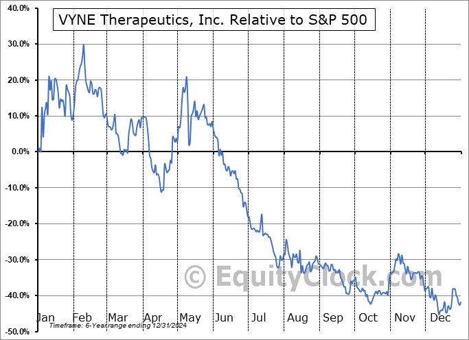 Analysis of the VYNE Therapeutics, Inc. (NASD:VYNE) seasonal charts above shows that a Buy Date of December 29 and a Sell Date of April 3 has resulted in a geometric average return of 2.64% above the benchmark rate of the S&P 500 Total Return Index over the past 6 years. This seasonal timeframe has shown positive results compared to the benchmark in 4 of those periods. This is a good rate of success and the return strongly outperforms the relative buy-and-hold performance of the stock over the past 6 years by an average of 63.14% per year.
