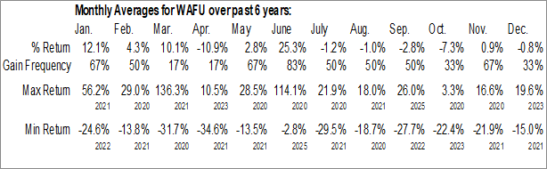 A word of caution: Only 5 years of data is available for shares of WAFU, perhaps insufficient to create a seasonal profile that accurately gauges the seasonal tendencies influencing the investment. Ideally, while 20 years is preferred, at least 10 years of data is required to perform a seasonal analysis that is considered to be reliable for future seasonal periods.