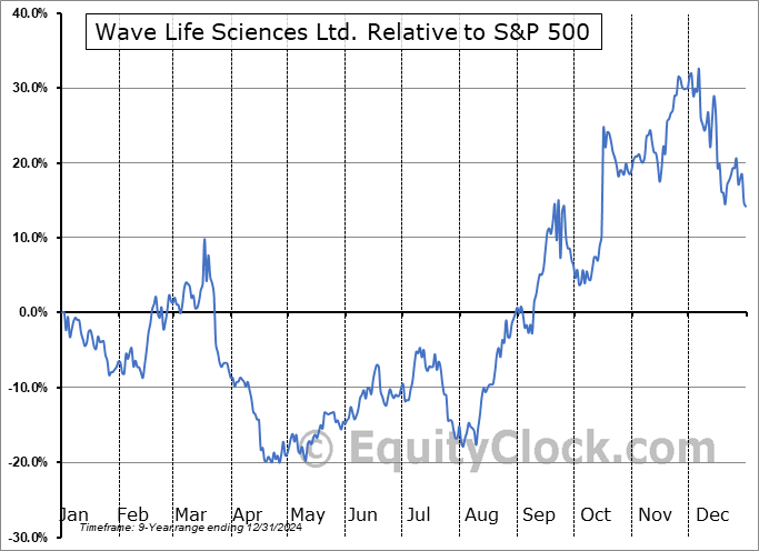 Analysis of the Wave Life Sciences Ltd. (NASD:WVE) seasonal charts above shows that a Buy Date of August 2 and a Sell Date of December 2 has resulted in a geometric average return of 39.67% above the benchmark rate of the S&P 500 Total Return Index over the past 9 years. This seasonal timeframe has shown positive results compared to the benchmark in 7 of those periods. This is a good rate of success and the return strongly outperforms the relative buy-and-hold performance of the stock over the past 9 years by an average of 54.28% per year.