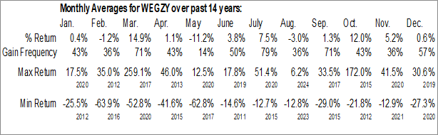 To download WEGZY seasonal chart data, please log in or Subscribe.