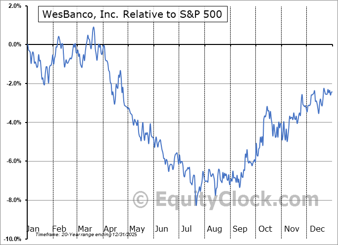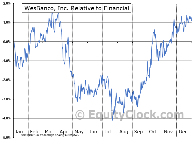 Analysis of the WesBanco, Inc. (NASD:WSBC) seasonal charts above shows that a Buy Date of September 7 and a Sell Date of December 2 has resulted in a geometric average return of 4.58% above the benchmark rate of the S&P 500 Total Return Index over the past 20 years. This seasonal timeframe has shown positive results compared to the benchmark in 16 of those periods. This is a very good rate of success and the return strongly outperforms the relative buy-and-hold performance of the stock over the past 20 years by an average of 10.32% per year.