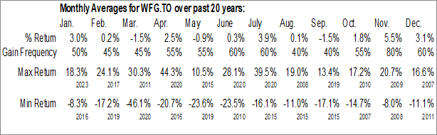 To download WFG.TO seasonal chart data, please log in or Subscribe.