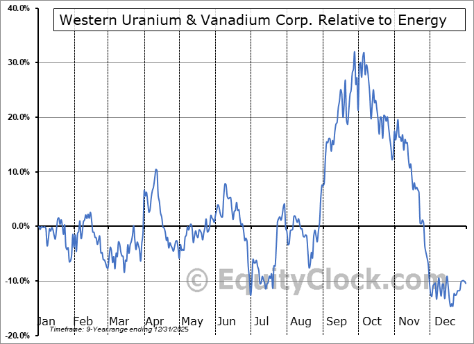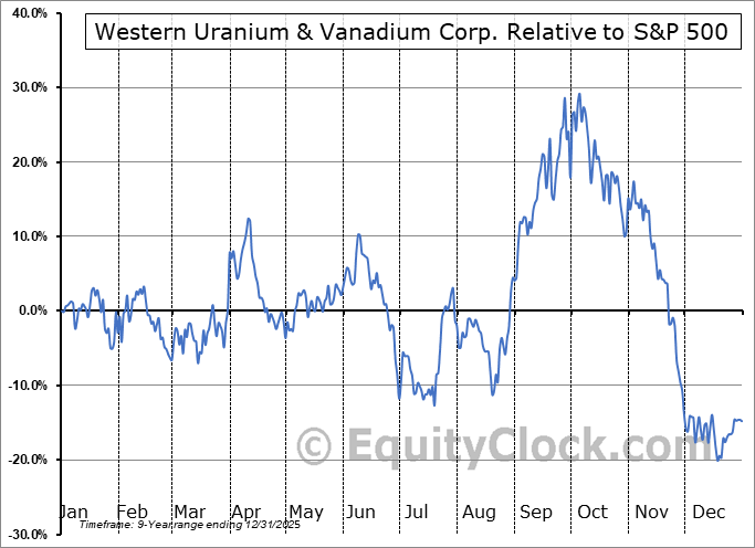 Analysis of the Western Uranium & Vanadium Corp. (OTCMKT:WSTRF) seasonal charts above shows that a Buy Date of July 15 and a Sell Date of October 9 has resulted in a geometric average return of 30.74% above the benchmark rate of the S&P 500 Total Return Index over the past 8 years. This seasonal timeframe has shown positive results compared to the benchmark in 6 of those periods. This is a good rate of success and the return strongly outperforms the relative buy-and-hold performance of the stock over the past 8 years by an average of 50.25% per year.