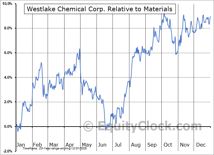 Analysis of the Westlake Chemical Corp. (NYSE:WLK) seasonal charts above shows that a Buy Date of November 7 and a Sell Date of February 15 has resulted in a geometric average return of 4.78% above the benchmark rate of the S&P 500 Total Return Index over the past 20 years. This seasonal timeframe has shown positive results compared to the benchmark in 16 of those periods. This is a very good rate of success and the return strongly outperforms the relative buy-and-hold performance of the stock over the past 20 years by an average of 3.35% per year.