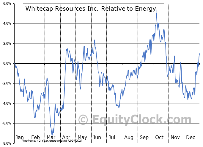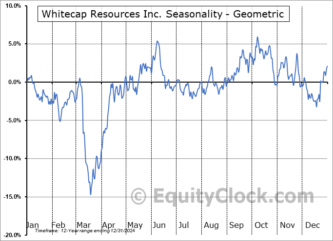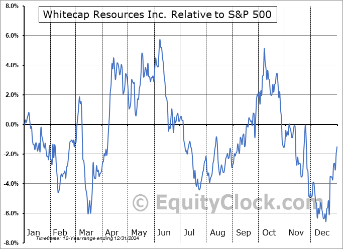 Analysis of the Whitecap Resources Inc. (OTCMKT:WCPRF) seasonal charts above shows that a Buy Date of March 13 and a Sell Date of June 2 has resulted in a geometric average return of 10.89% above the benchmark rate of the S&P 500 Total Return Index over the past 12 years. This seasonal timeframe has shown positive results compared to the benchmark in 10 of those periods. This is a very good rate of success and the return strongly outperforms the relative buy-and-hold performance of the stock over the past 12 years by an average of 22.25% per year.