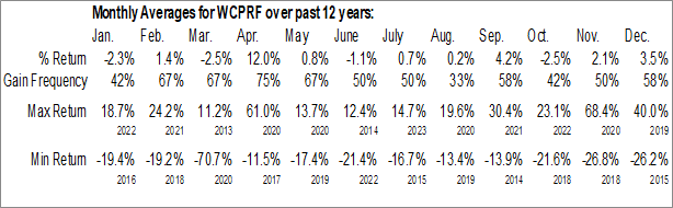 Whitecap Resources Inc. (OTCMKT:WCPRF) Seasonal Chart