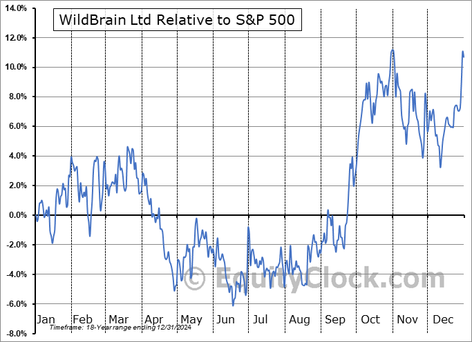 Analysis of the WildBrain Ltd (TSE:WILD.TO) seasonal charts above shows that a Buy Date of July 6 and a Sell Date of September 27 has resulted in a geometric average return of 1.12% above the benchmark rate of the S&P 500 Total Return Index over the past 18 years. This seasonal timeframe has shown positive results compared to the benchmark in 13 of those periods. This is a good rate of success and the return strongly outperforms the relative buy-and-hold performance of the stock over the past 18 years by an average of 10.91% per year.