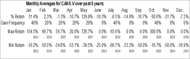 To download CANS.V seasonal chart data, please log in or Subscribe.