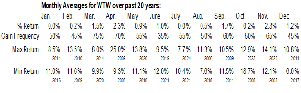 Willis Towers Watson Public Ltd. Co. (NASD:WTW) Seasonal Chart